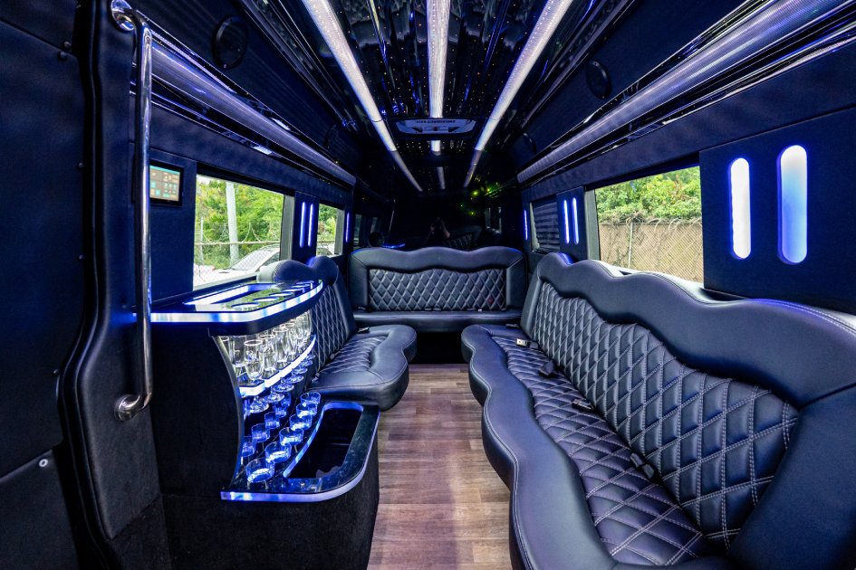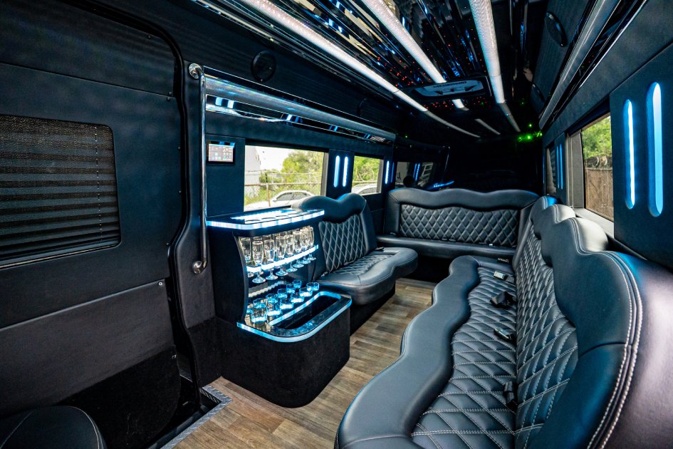 Ride to your event in our 12 Passenger Mercedes Sprinter Limousine featuring a bar stocked with ice, water, and glassware. The Sprinter has all the high-end touches you would expect from Mercedes-Benz. Experience luxury transportation for your group!