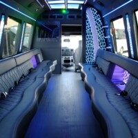 Take a ride in our 12-24 Passenger Party Bus, featuring a bar stocked with ice and water. The 24 Passenger Party Bus is perfect to get your group to and from that special event. Gather 24 of your friends for a party and we will take care of the driving!