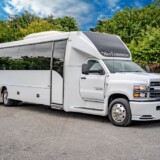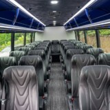Get ready for your special event by reserving our 36 Passenger Shuttle Bus for your group. Enjoy the journey by watching TV, comfortably seated in individual leather chairs. Transport your attendees to your event effortlessly and make use of our ample overhead and rear storage.