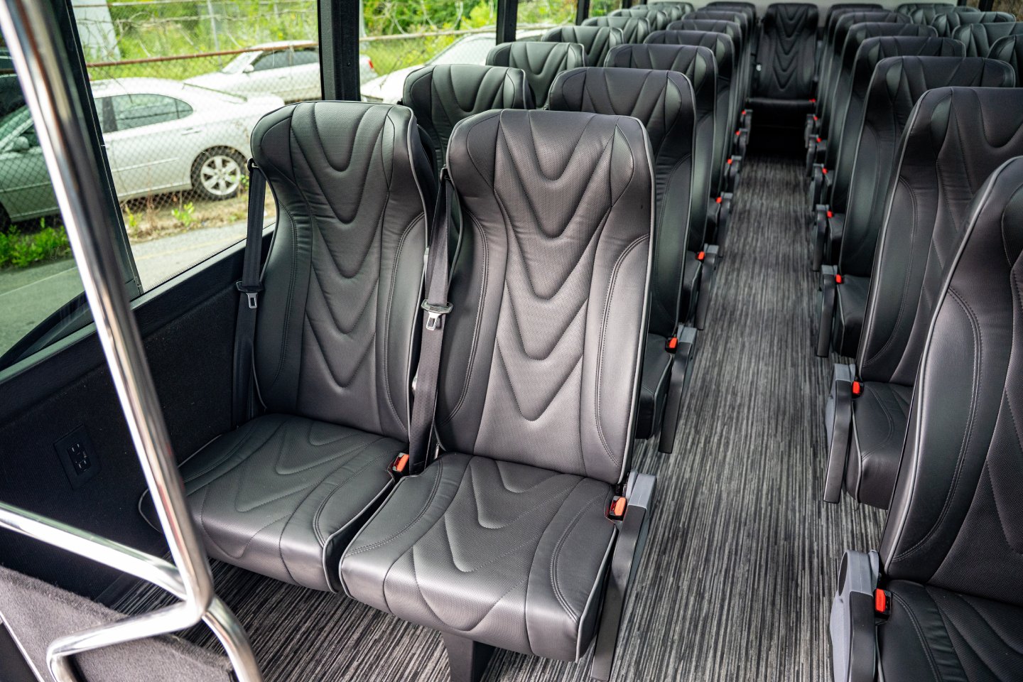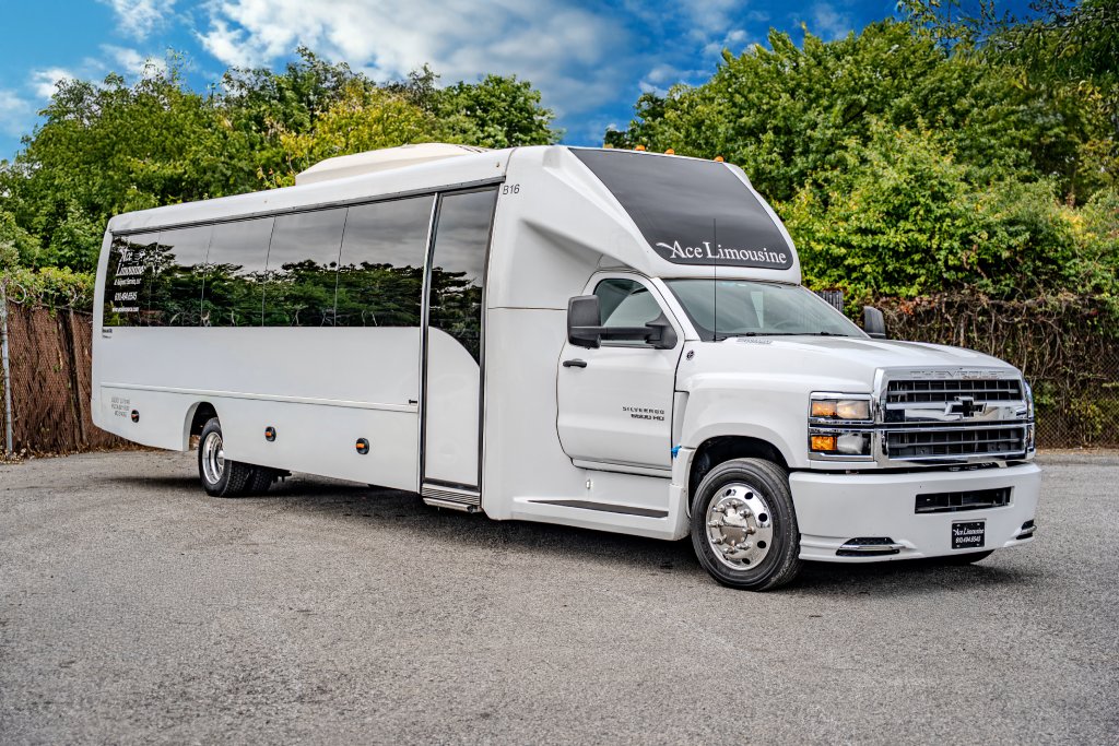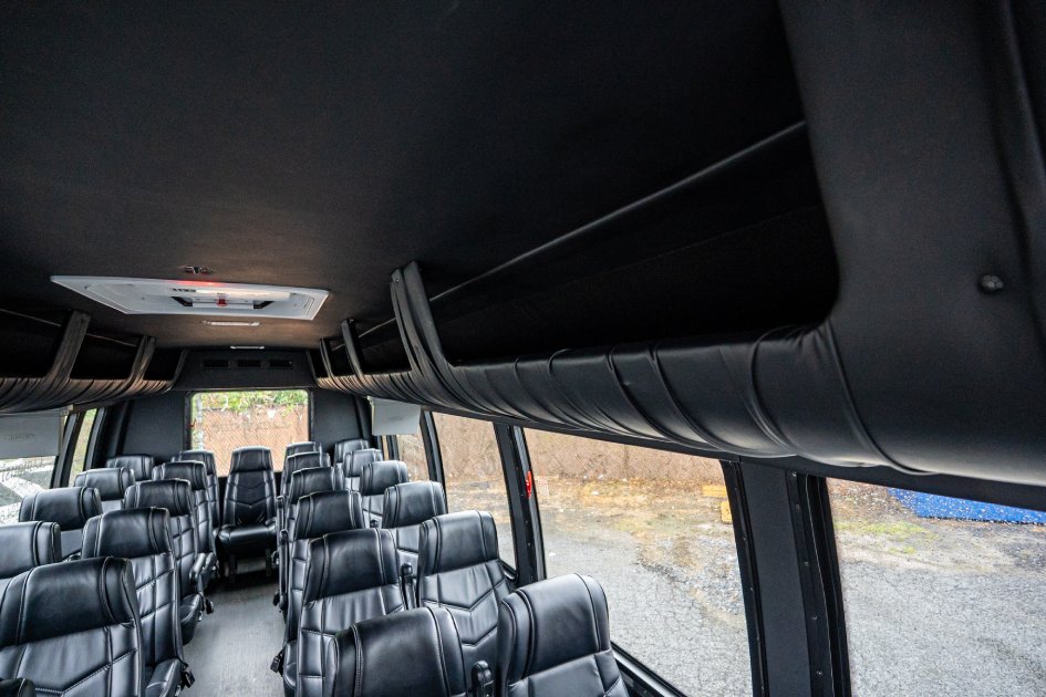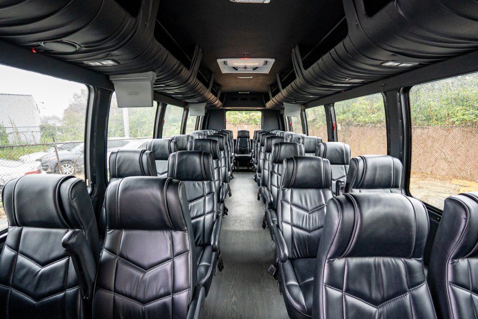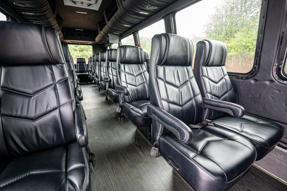 Get ready for your special event by reserving our 36 Passenger Shuttle Bus for your group. Enjoy the journey by watching TV, comfortably seated in individual leather chairs. Transport your attendees to your event effortlessly and make use of our ample overhead and rear storage.