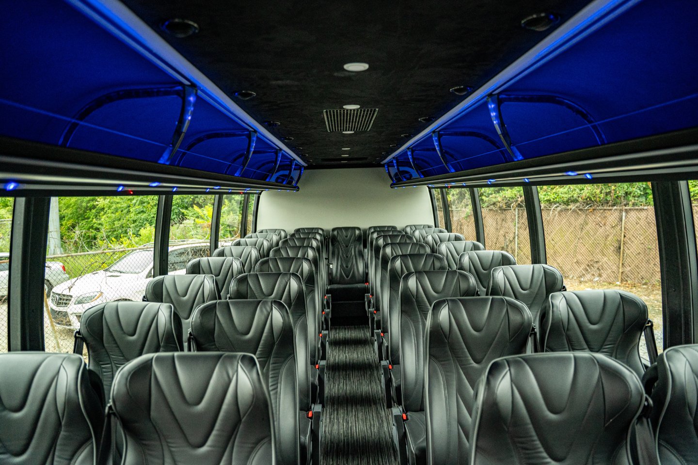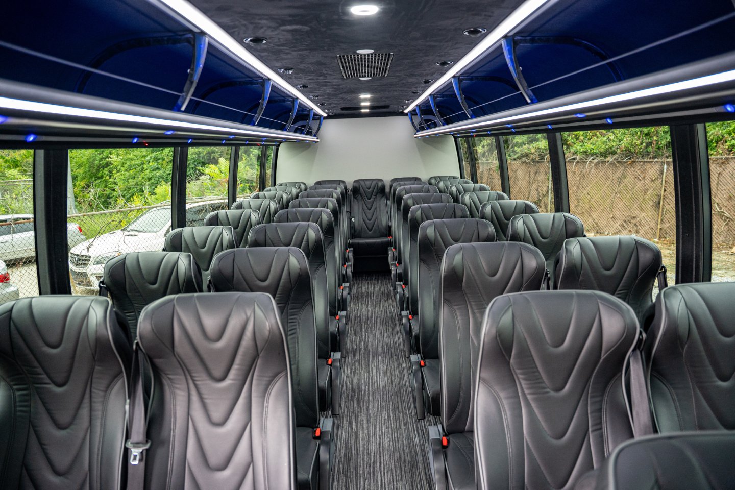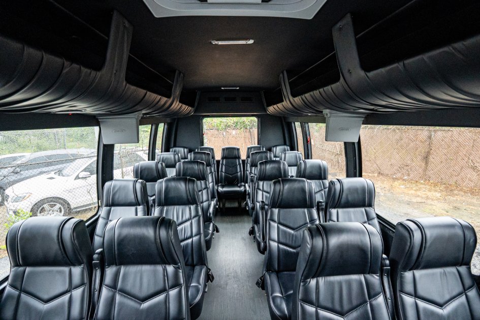Get ready for your special event by reserving our 36 Passenger Shuttle Bus for your group. Enjoy the journey by watching TV, comfortably seated in individual leather chairs. Transport your attendees to your event effortlessly and make use of our ample overhead and rear storage.