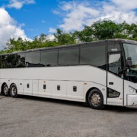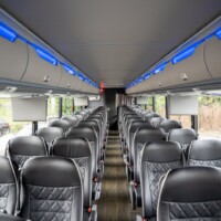 Prepare for your large group trip by booking our 54-56 Passenger Coach Bus. Relax on your trip while watching TV on the vehicle with On-Board Restroom. Easily get attendees to your event and take advantage of our overhead and under-bus storage.