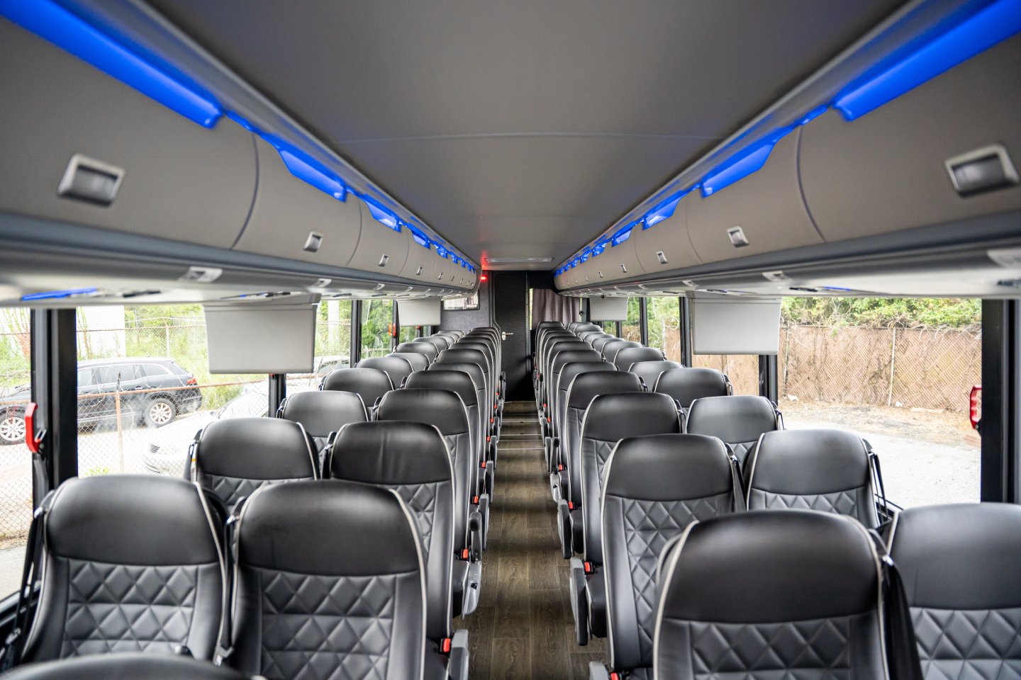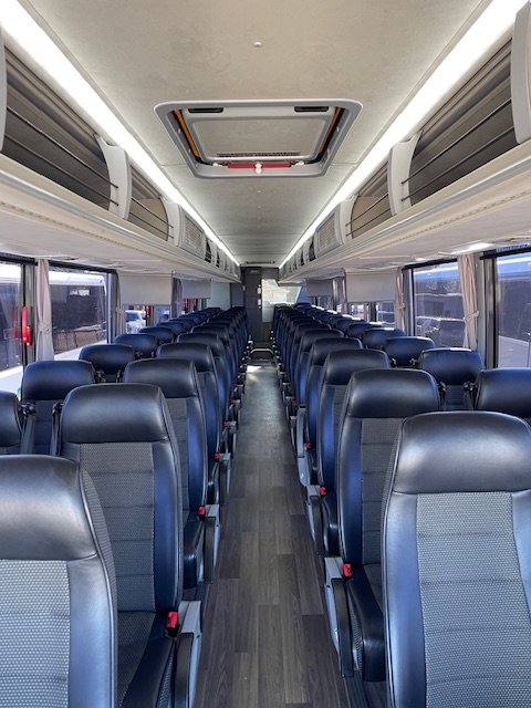 Prepare for your large group trip by booking our 54-56 Passenger Coach Bus. Relax on your trip while watching TV on the vehicle with On-Board Restroom. Easily get attendees to your event and take advantage of our overhead and under-bus storage.